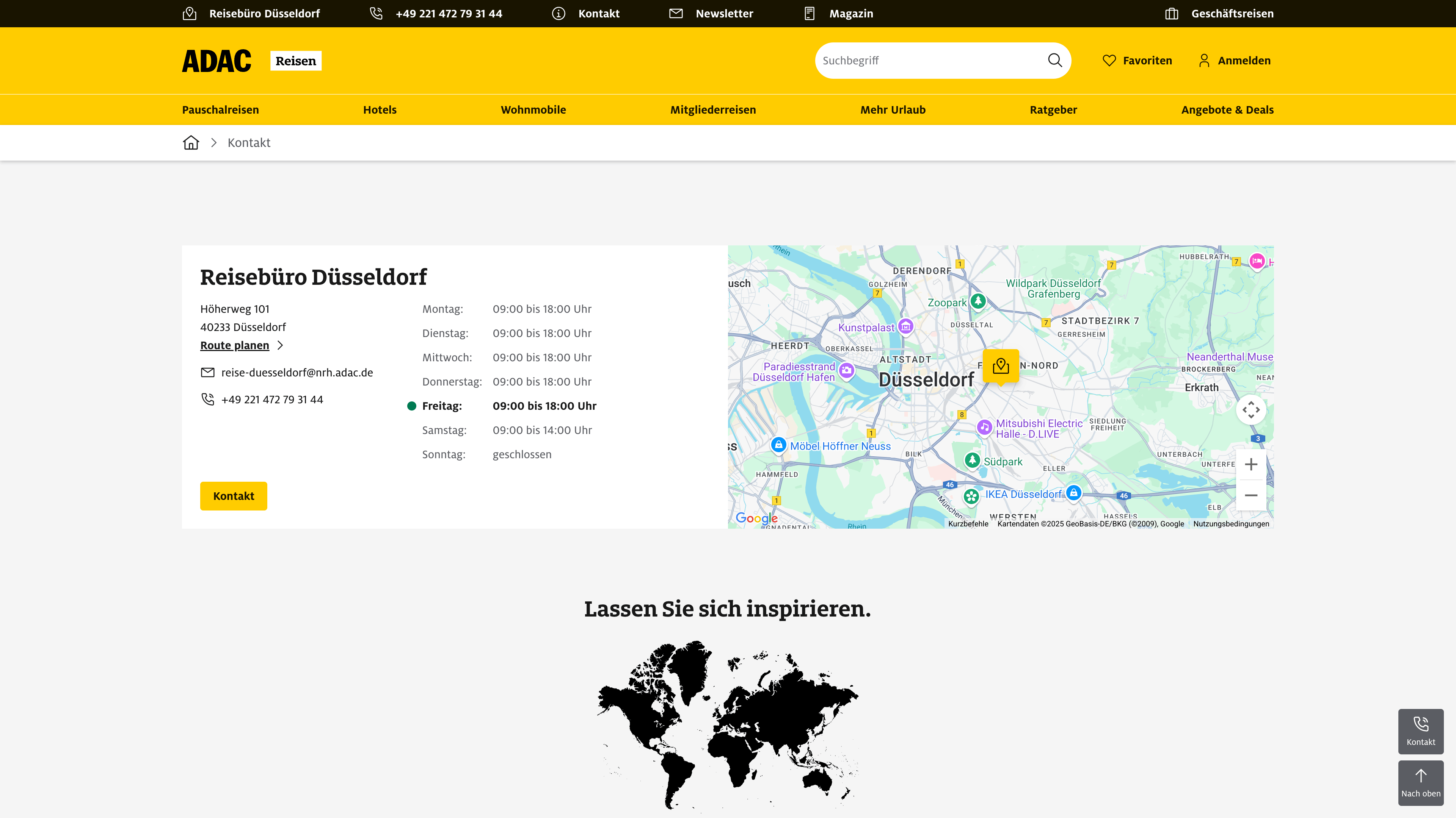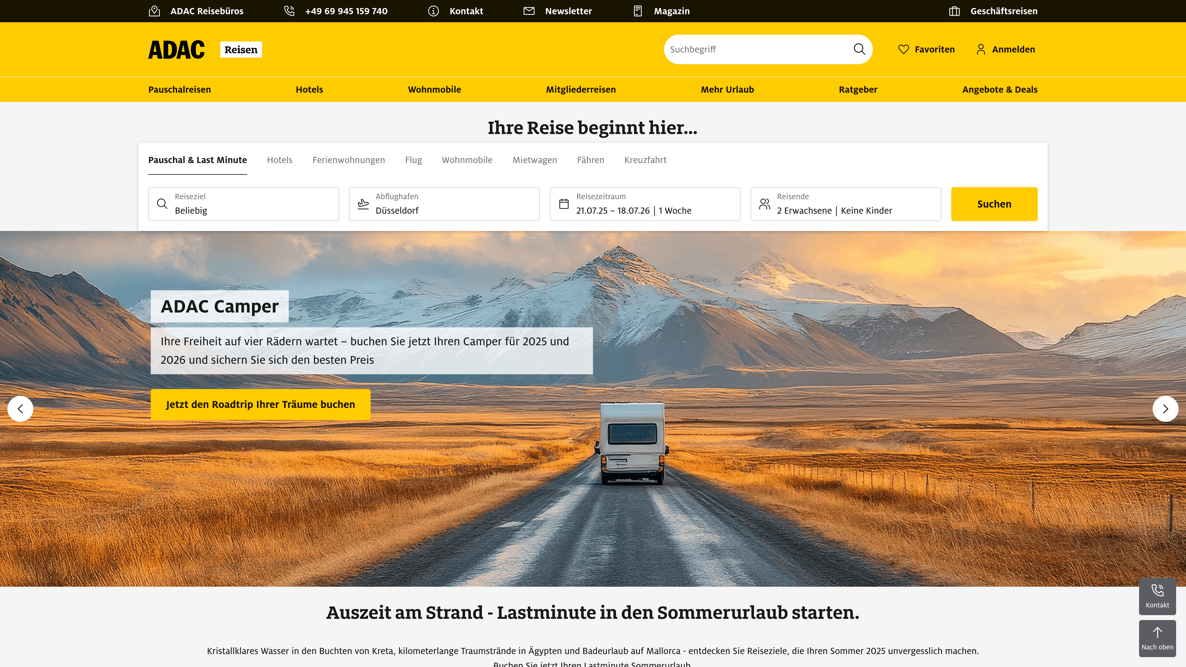 ADAC Reisen ist eine Tochtergesellschaft der ADAC Regionalclubs und betreibt über 250 Reisebüros sowie die Online-Portale adacreisen.de, galeria-reisen.de und urlaub.de . Das Unternehmen bietet Pauschal-, Individual- und Gruppenreisen aller namhaften Reiseveranstalter an sowie auch Ferienwohnungen, Wohnmobile, Mietwagen, Fähren, Kreuzfahrten und exklusive, ausgewählte Reisen für ADAC Mitglieder.