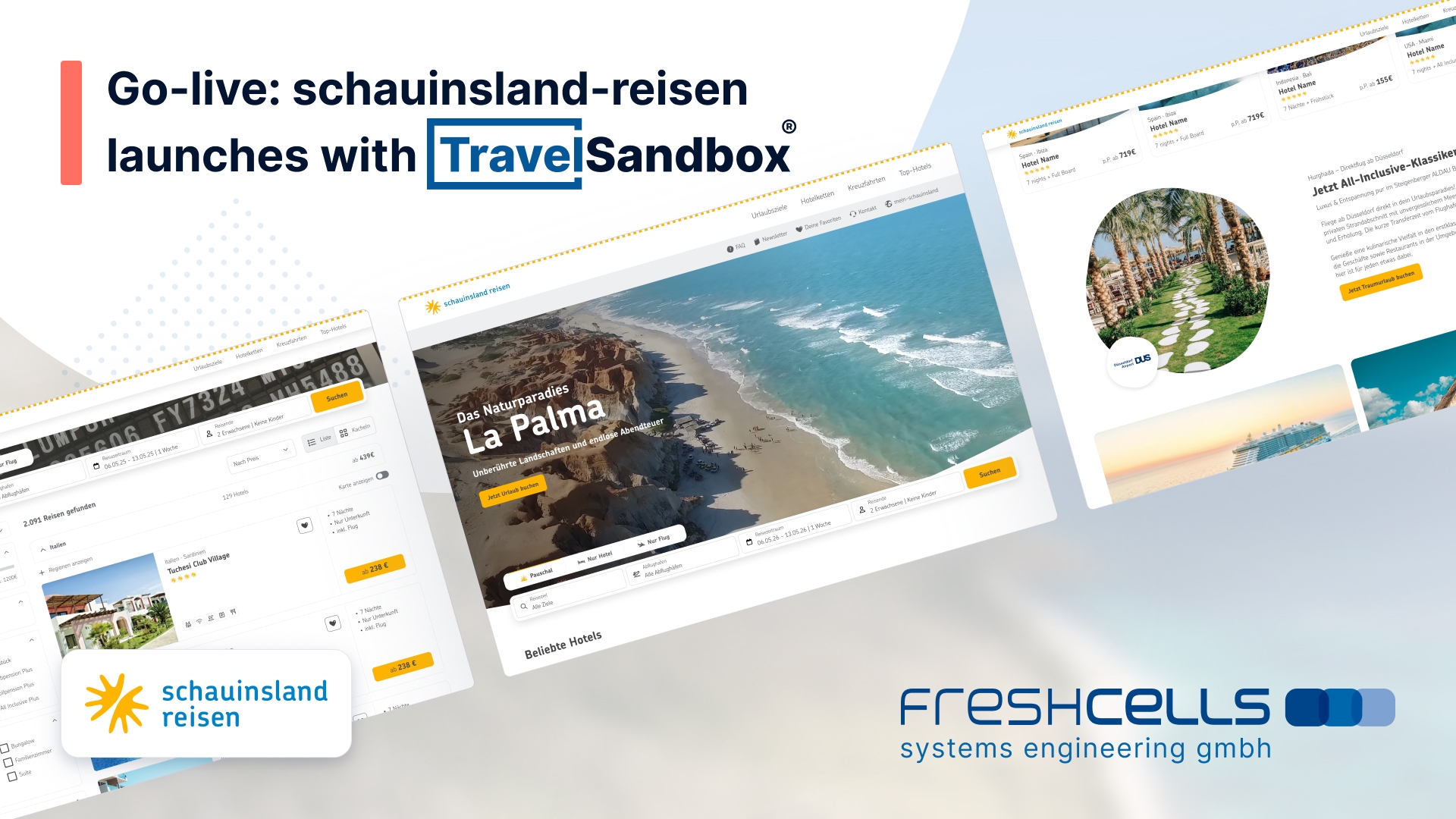 Düsseldorf, October 7, 2025 – schauinsland-reisen, one of Germany’s leading tour operators, is taking the next step in its digital transformation by implementing the TravelSandbox® platform from Düsseldorf-based software experts freshcells. With the successful go-live, the company marks a major milestone toward future-proof, flexible, and efficient sales structures.